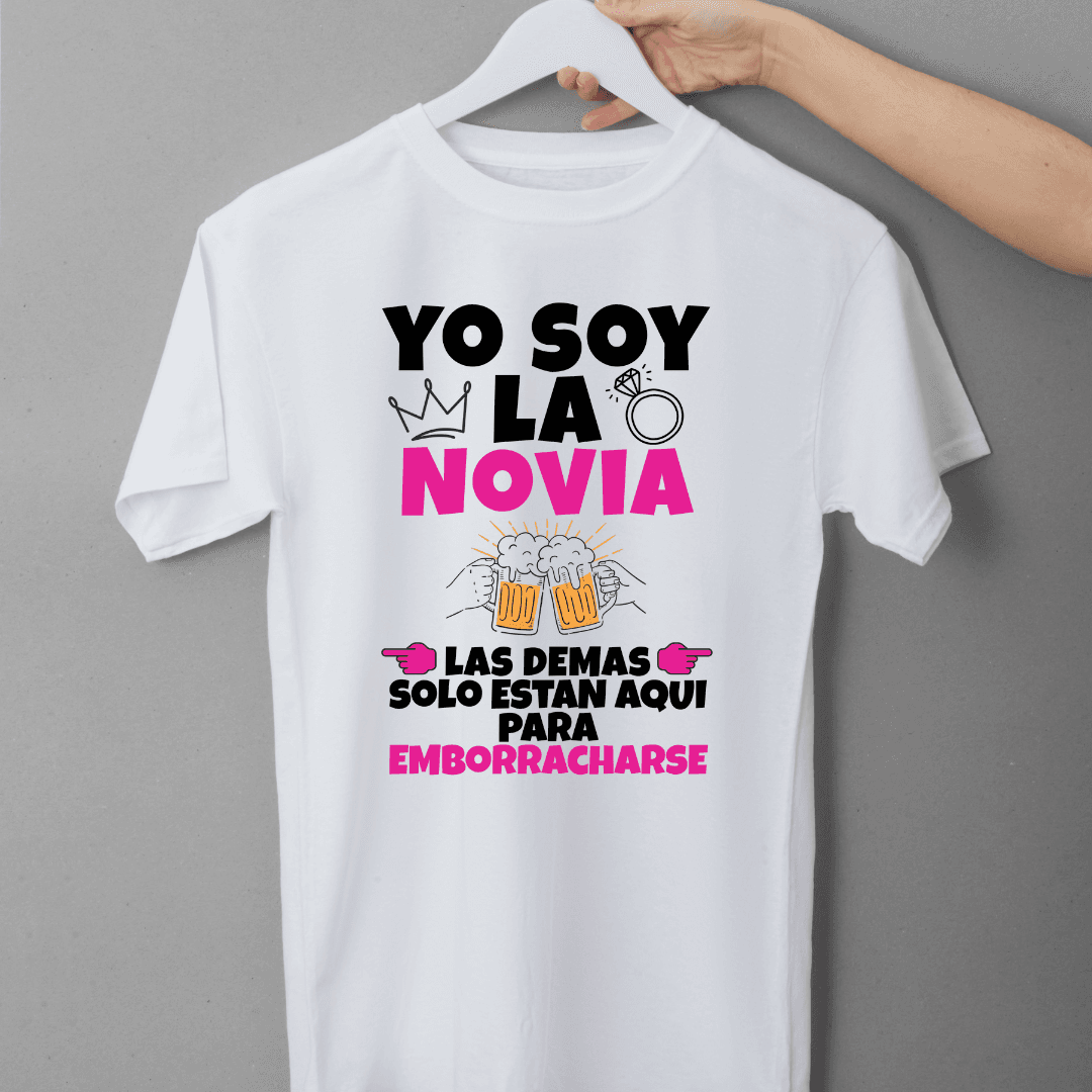 La camiseta “Yo soy la novia” es la elección ideal para destacar en tu despedida de soltera. Con un mensaje claro y atrevido, por eso esta camiseta deja bien claro quién es la protagonista del día. ¡Tú eres la novia, y ellas solo están aquí para emborracharse contigo! 😄